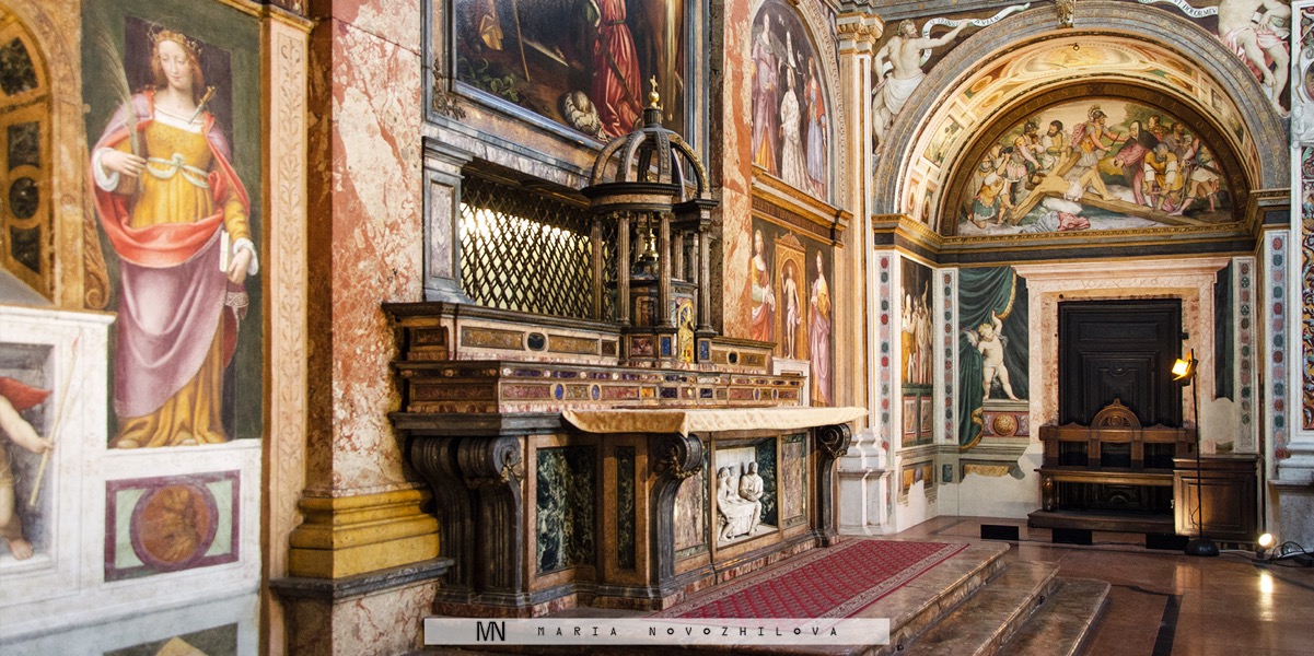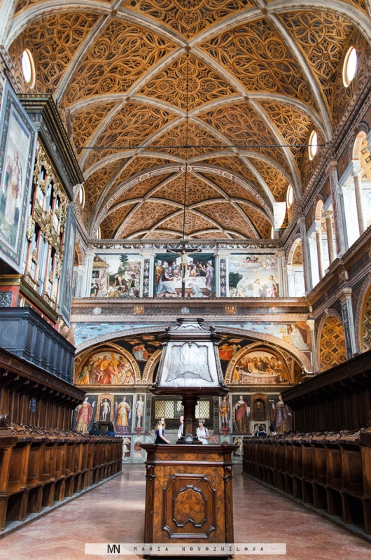 The spectacular interior of this building measures over 4,000 square meters of masterpiece frescoes that can astonish the biggest experts of the Italian art. Hundreds of unique paintings, rich decorations, vibrant colors and exquisite details of this church were done by illustrious Bernarino Luini and other noted masters of the school of Leonardo. It took more than 20 years to restore San Maurizio al Monastero Maggiore and its mural heritage.