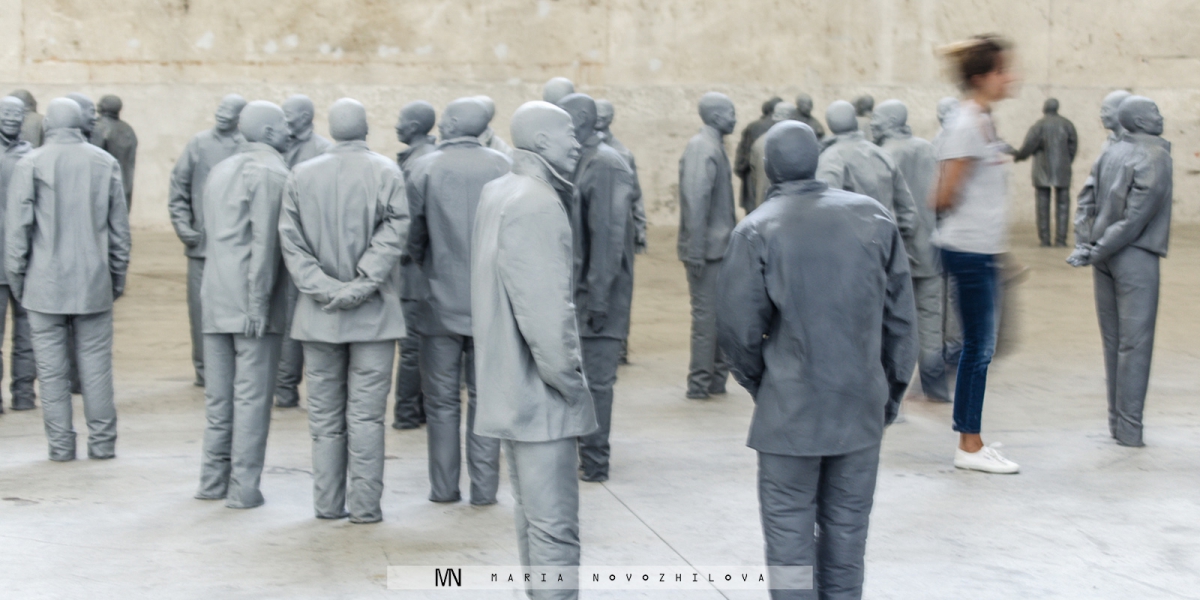 There is no choice indeed. Ones you are next to the Munoz’s installation you are a part of the artist’s project. And you are tricked by it. In fact, while a visitor believes to observe Munoz’s work, the one is observed by it. While one believes to be a part of this man-made crowd, he or she is excluded from any kind of real interaction with the figures. While one apparently views faces of others, he or she introspectively rakes over the dust and ashes of the own life. Such suggestive force pushing the observer to dive into one’s own thoughts and to figure out one’s own role in the society appears to be the typical of Munoz art.