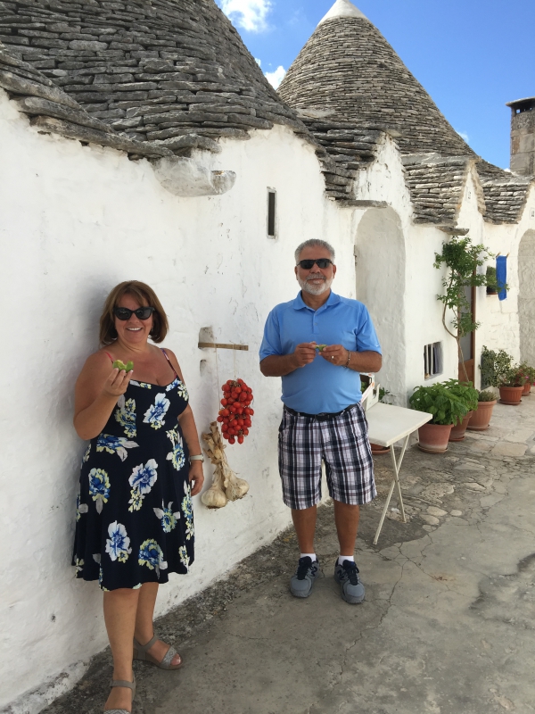 Alberobello- amazing tour, the owner gave us fresh figs to eat… and check out the giant garlic and tomatoes he grows…